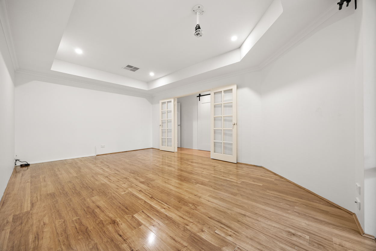 Double doors open to your private retreat: the front wing of the house with master bedroom, double walk-in robes and a sunny ensuite. You'll also find a quiet office and a spacious theatre room for movie nights.