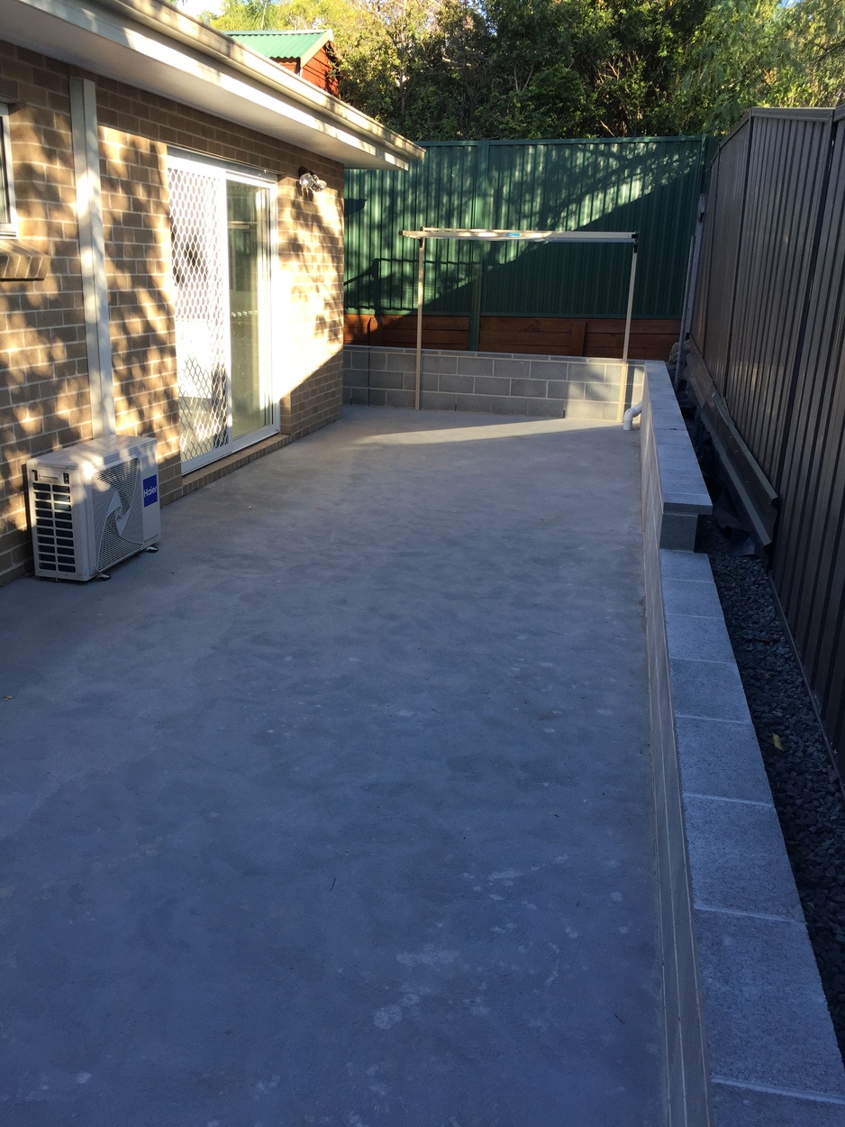 Private, low-maintenance concreted backyard with washing line
