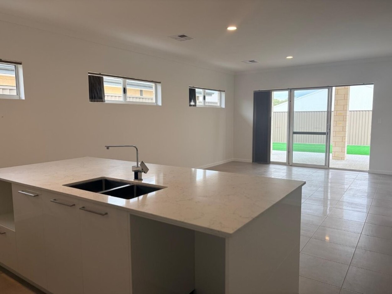 Step inside to discover a beautifully designed open plan kitchen, dining, and living area—ideal for everyday living and effortless entertaining. The kitchen is finished with elegant white marble benchtops and a 900mm oven, creating a stylish and functional space at the center of the home.