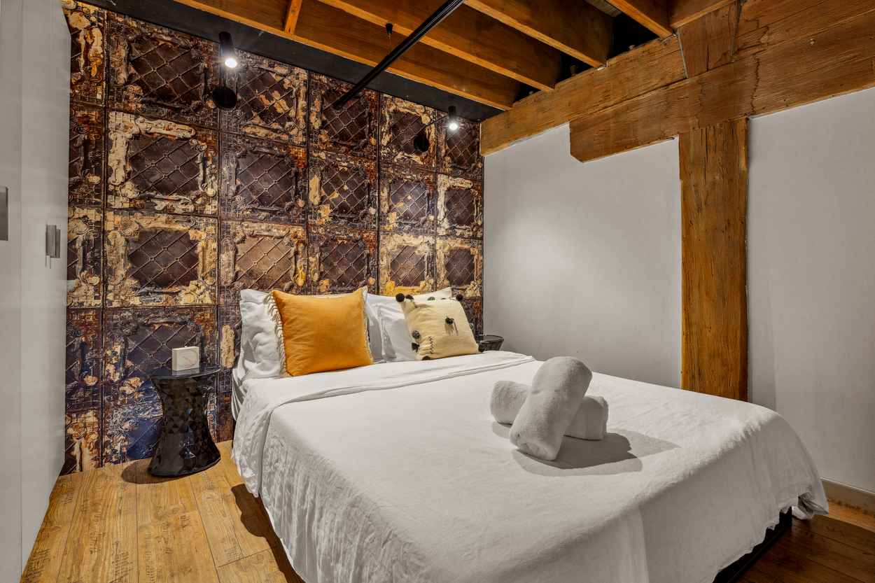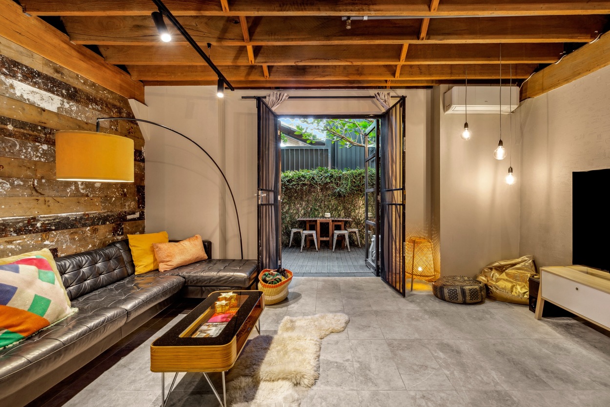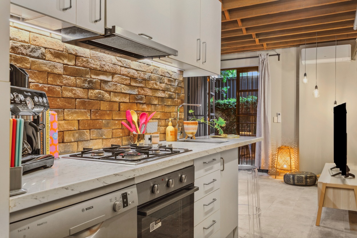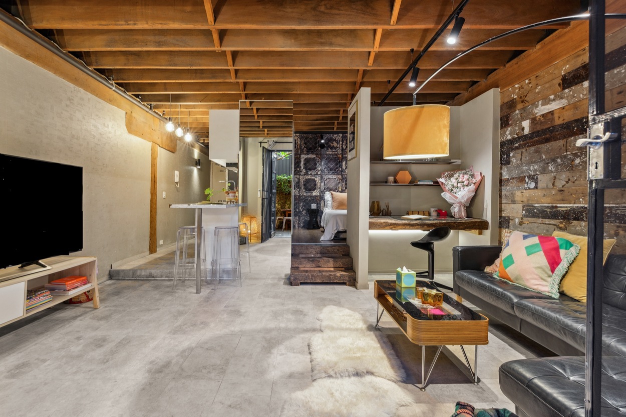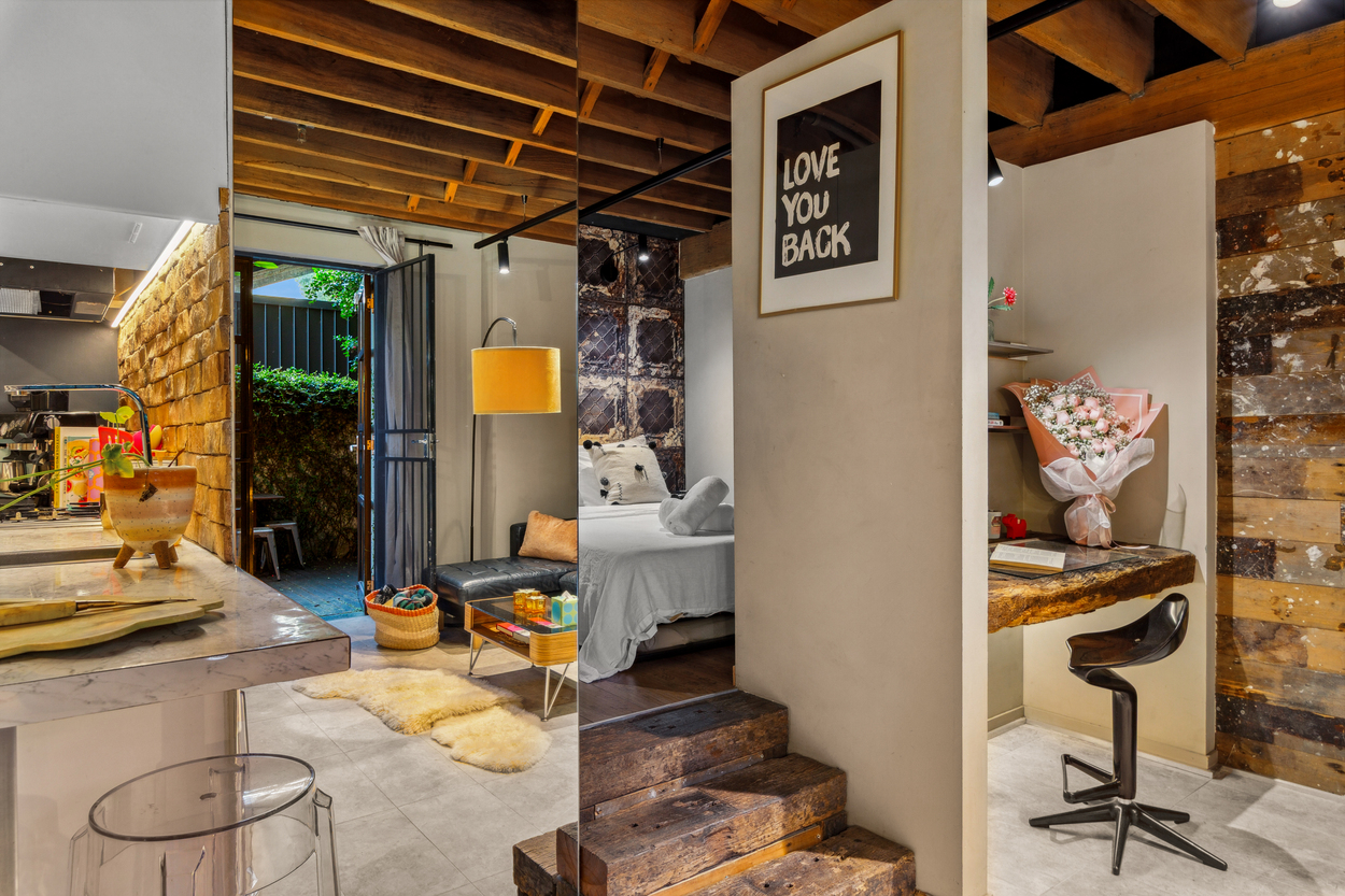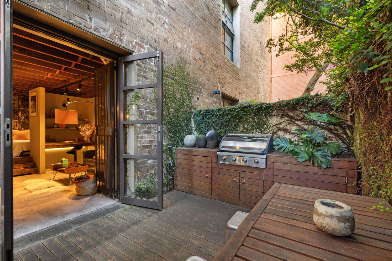 Step into a beautifully curated warehouse-style apartment in the heart of Chippendale, defined by soaring timber ceilings, designer finishes, and a private courtyard complete with BBQ and daybed.